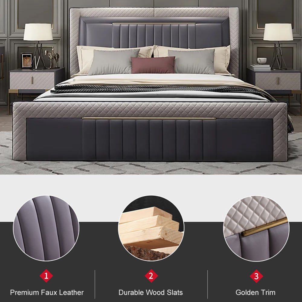 سرير سوبر كينج Velvet Dream – خشب طبيعي وتصميم فاخر