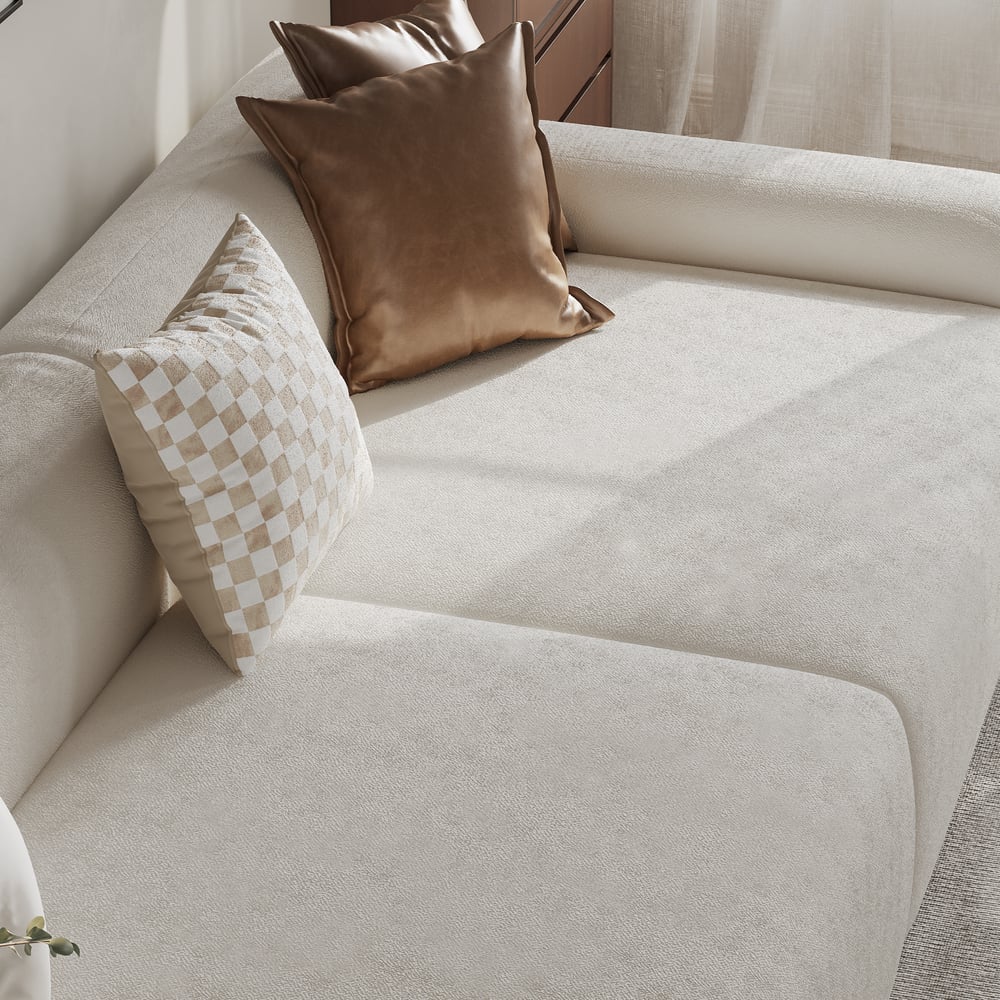كنبة ركنة خشب طبيعي وقماش كتان – أوف وايت