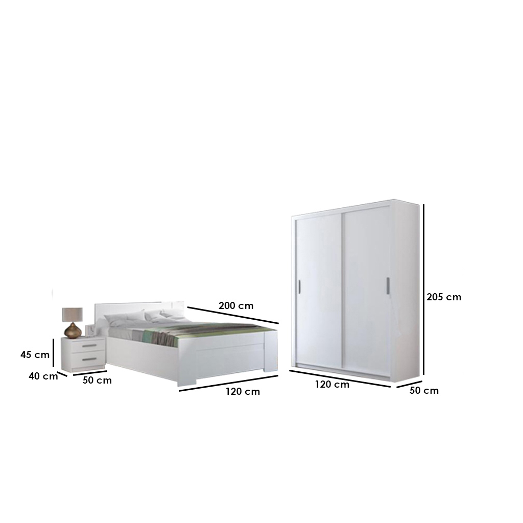 تصميم عصري وأنيق مع Nova، دولاب كبير، سرير سوبر كينج أو 2 سرير 120، 2 كومود، وتسريحة أو مكتب. ضمان 10 سنوات.
