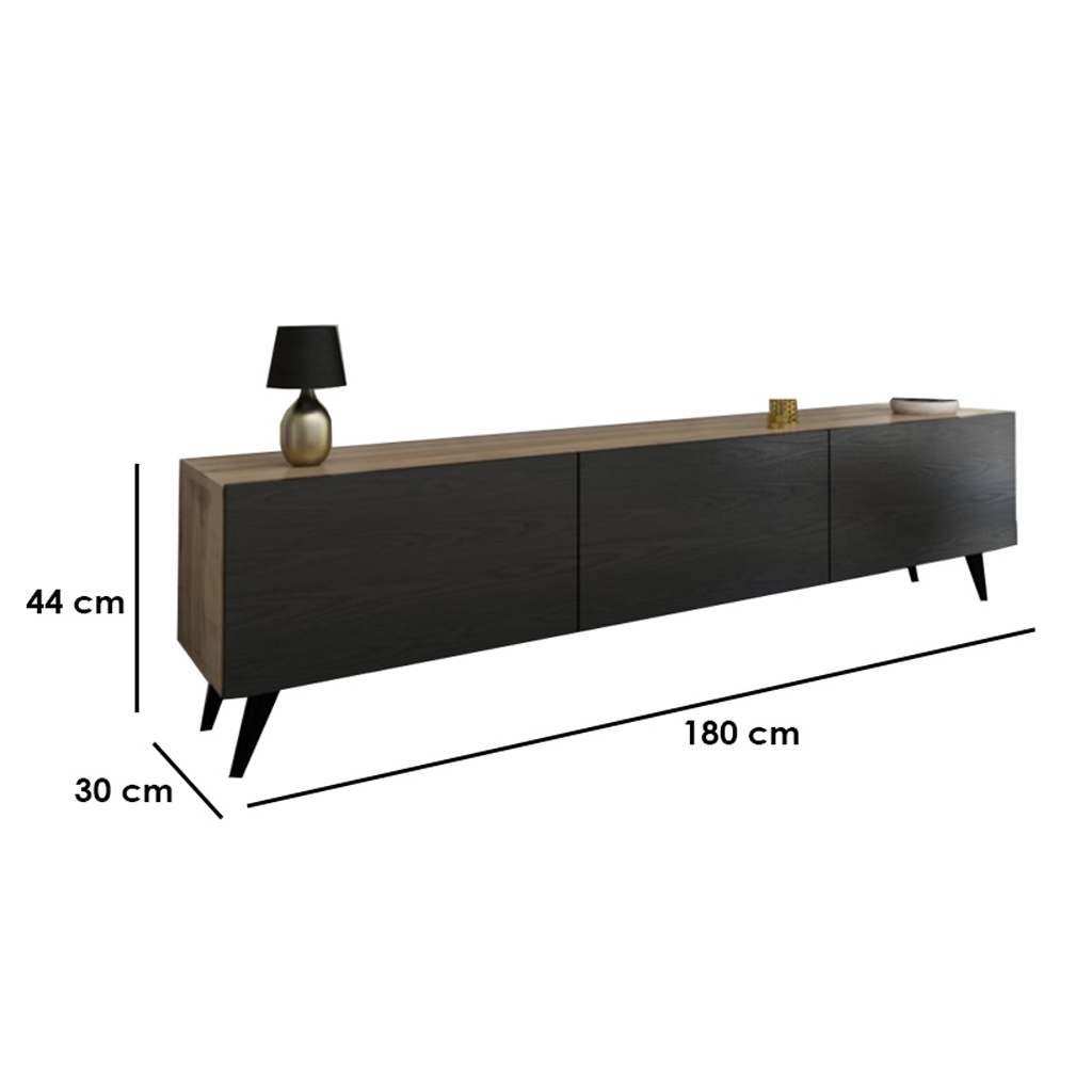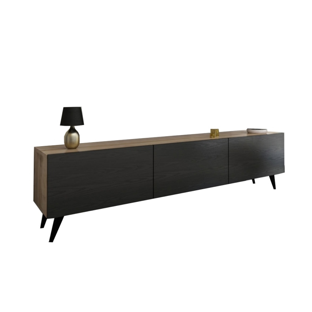 وحدة Oakline TV Unit مع مفصلات Soft Close، أرجل زان طبيعي، وأكسسوارات إيطالي. تصميم عصري وفاخر.