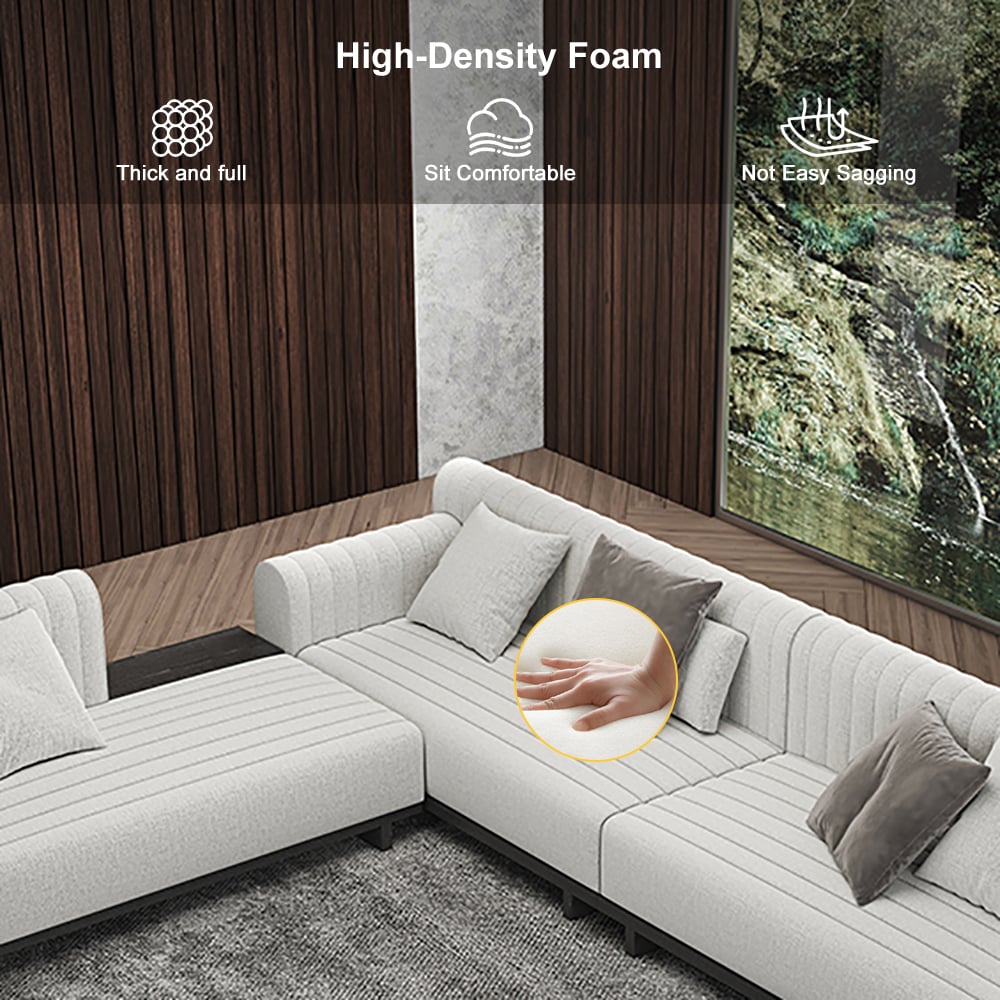 كنبة ركنة خشب طبيعي وقماش كتان – أوف وايت